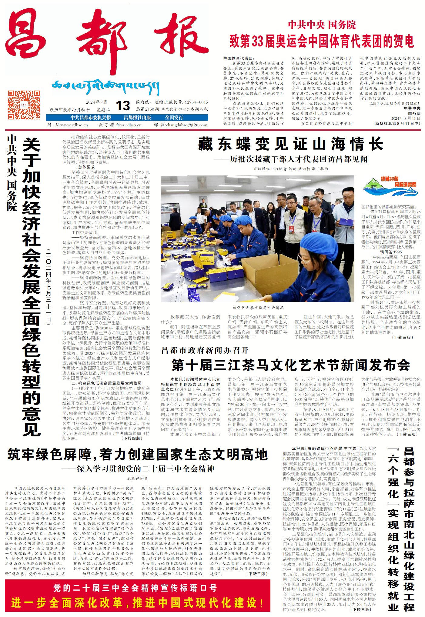 深化污染防治,描繪“低碳環(huán)保”新畫卷。長期以來,我市堅定不移走生態(tài)優(yōu)先、綠色發(fā)展之路,全市環(huán)境空氣質量優(yōu)良天數比例保持在100%,主要江河湖泊水質均達到Ш類及以上標準,確保了藏東高原山更綠、天更藍、水更清?!稕Q定》明確提出,“要發(fā)展綠色低碳產業(yè),加強綠色發(fā)展、數字經濟、人工智能、能源、稅收、金融、減災等領域的多邊合作平臺建設”。我們要以此為契機,堅持精準治污、科學治污、依法治污,持續(xù)推進“3+4”產業(yè)綠色低碳高質量發(fā)展,探索建立凈零碳綠色產業(yè)園區(qū),推廣綠色低碳生活方式,推進低碳社區(qū)、低碳家庭建設,持續(xù)打好藍天碧水凈土保衛(wèi)戰(zhàn)。